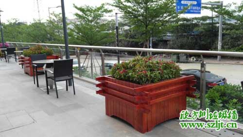 深圳平湖熙璟城采購的型號為P16無靠背園林椅,規(guī)格為1.2m;木制花箱型號為X02,規(guī)格為1300*1300*700mm,采用防腐木、玻璃鋼內(nèi)襯制作而成。
