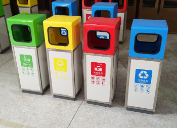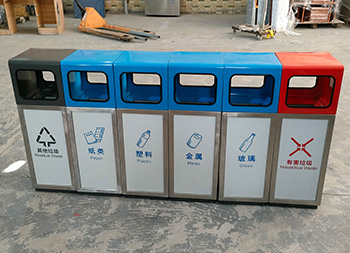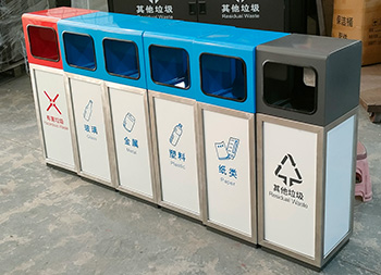 戶外幼兒園組合式彩色不銹鋼分類垃圾桶桶身使用了201#不銹鋼1.0厚的板材制造,雙面投口方形單筒組合式擺放分類設(shè)計(jì),表面采用了多色彩噴塑可以按照用戶需要烤漆,可絲網(wǎng)印刷玻璃、金屬、塑料、紙類、其他垃圾、有害垃圾等最新國標(biāo)分類標(biāo)識,取出頂部投口可取出內(nèi)置的內(nèi)筒方便清理廢物。