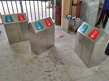創(chuàng)意戶外帶蓋分類不銹鋼垃圾桶可選用201#,202#,304#不同型號(hào)的不銹鋼材質(zhì),生產(chǎn)的成品價(jià)格也會(huì)不同,不同型號(hào)材質(zhì)表面加工不同抗腐蝕能力也是有區(qū)別的,腐蝕環(huán)境要求光滑的表面是因?yàn)楸砻婀饣蝗菀追e垢,污垢的沉積會(huì)使不銹鋼生銹甚至造成腐蝕。表面還可做防指紋處理,指紋手印雖然可以擦掉,但影響美觀,所以可根據(jù)客戶需求選用防指紋處理。若覺得不銹鋼本色比較單調(diào),那么你可選擇產(chǎn)品表面電鍍工藝,鈦金、玫瑰金等顏色高檔美觀,可定制各種色彩和各種不銹鋼垃圾桶款式。