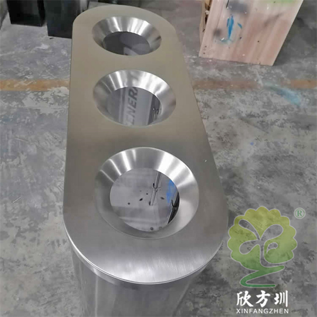 室內(nèi)出口地鐵站透明不銹鋼分類垃圾桶可以選用201或者304不銹鋼板制作,立式橢圓形連體三分類設(shè)計,透明查探區(qū)域可以采用高清的亞克力板或者鋼化玻璃制造,透明板可以絲印中英文文字或者做貼紙,投口圓錐形平滑投遞廢物不易傷手,表面可以噴粉和電鍍支持定制。