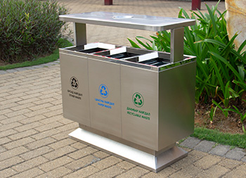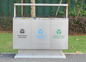 出口戶外三分類不銹鋼垃圾桶制作精良,戶外方形三分類設(shè)計,適合擺放在戶外物業(yè)小區(qū)、學(xué)校、寫字樓、醫(yī)院、商場等等,注重產(chǎn)品細(xì)節(jié)部位處理堅固耐用,安全無利口,不傷手,201不銹鋼外筒,鍍鋅板內(nèi)筒 ,便于垃圾清倒。