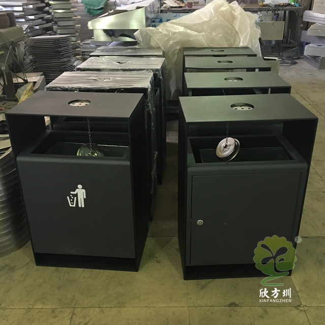 戶外方形噴塑不銹鋼果皮箱采用304不銹鋼厚度足1.0mm內(nèi)桶鋅板0.4mm外框啞光黑,桶身灰色絲網(wǎng)印刷雙面人投標(biāo),雙面投口方形設(shè)計(jì),頂部中心位置帶一個(gè)圓形的煙灰盅,單面垃圾桶門可以使用三角鑰匙開(kāi)門取出框架里面的內(nèi)筒,頂部隔空了幾厘米預(yù)防內(nèi)筒進(jìn)水可以避免潮濕,下面可以膨脹螺絲固定在路面,防止被盜搶或挪動(dòng)。