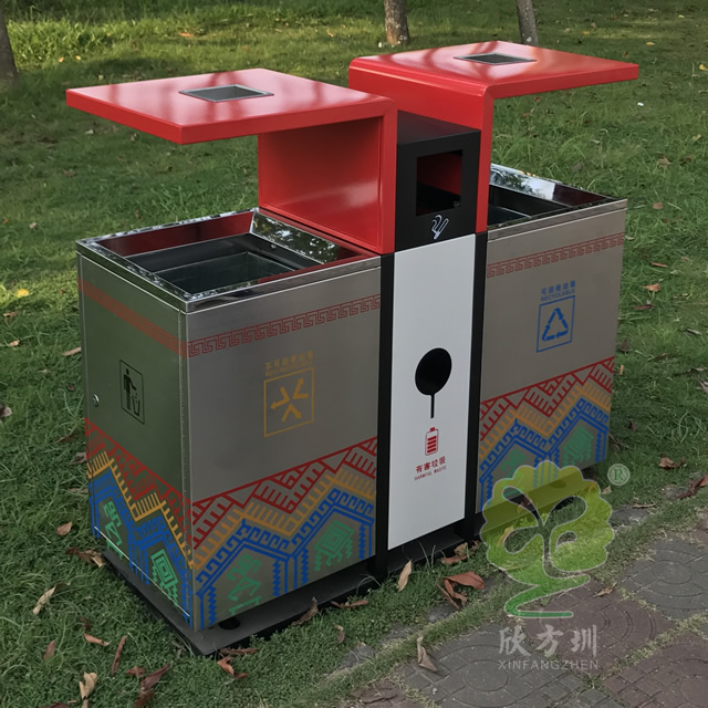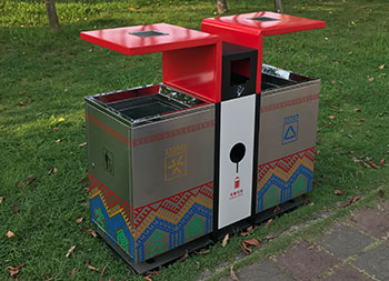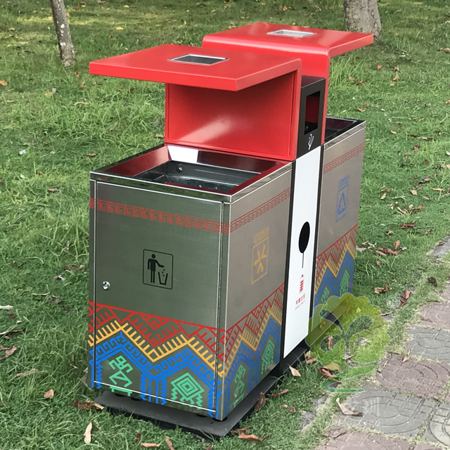 公園UV打印不銹鋼兩分類垃圾箱采用304#優(yōu)質(zhì)不銹鋼材料模壓成型;桶身彩色部分采用了新型的UV打印技術(shù)印刷上去的,雙面有害垃圾和煙灰盅投口中國風(fēng)設(shè)計(jì)不僅僅耐看;內(nèi)筒采用鍍鋅板,堅(jiān)固耐用,不易破損;耐火安全,抗高低溫,適合各種惡劣氣候條件。