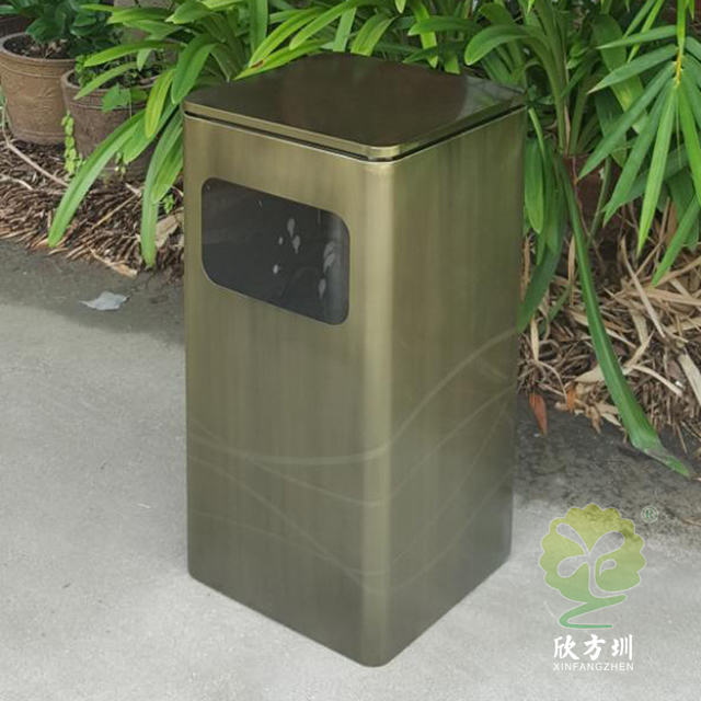 仿青古銅色方形不銹鋼果皮箱這款垃圾桶制作精良,戶外單筒電鍍仿青古銅色方形設(shè)計,適合擺放在物業(yè)小區(qū)、購物商城、旅游景區(qū)電梯口等等,注重產(chǎn)品細(xì)節(jié)部位處理堅固耐用,安全無利口,不傷手,304不銹鋼外筒,鍍鋅板內(nèi)筒 ,便于垃圾清倒。