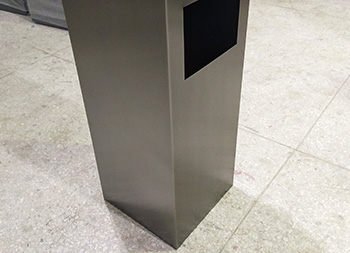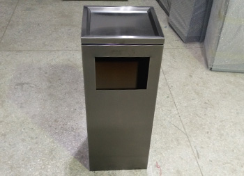 室內(nèi)電鍍黑鈦不銹鋼果皮箱采用了201#不銹鋼板1.0mm厚的板材制作,電鍍黑鈦工藝方形設(shè)計,欣方圳支持304不銹鋼板定制或者電鍍其他顏色以及烤漆,規(guī)格大小都可以根據(jù)客戶,頂部帶凹方形的煙灰盅可以到入滅煙砂提供滅煙使用,拿開頂部的垃圾桶蓋子可以方便取出里面的內(nèi)筒,方便清潔工人處理垃圾桶內(nèi)的垃圾。