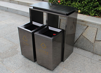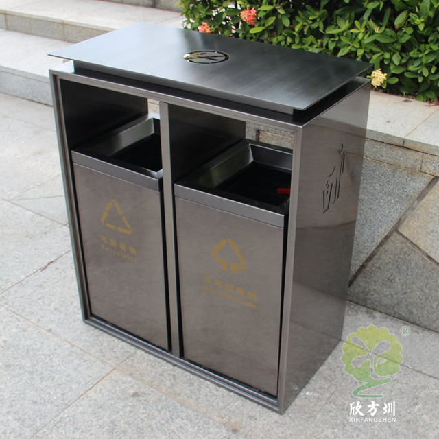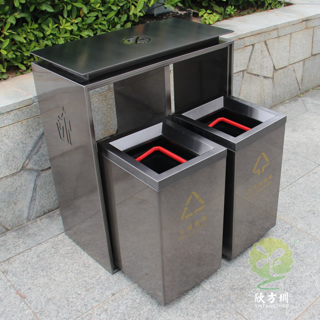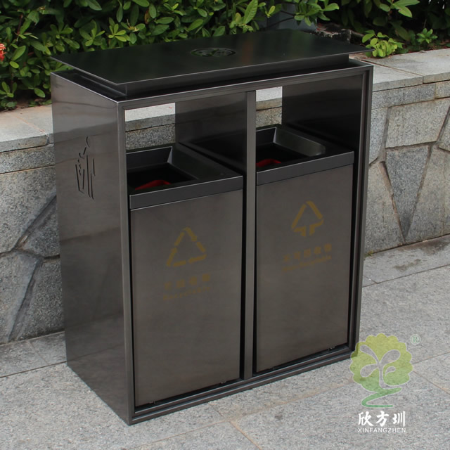 電鍍黑鈦雙分類不銹鋼垃圾桶制作精良,雙分類方形搖蓋式高檔設(shè)計(jì),適合擺放在物業(yè)小區(qū)、車站、醫(yī)院、商場(chǎng)等等,注重產(chǎn)品細(xì)節(jié)部位處理堅(jiān)固耐用,安全無(wú)利口,不傷手,201不銹鋼外筒,鍍鋅板內(nèi)筒 ,便于垃圾清倒。