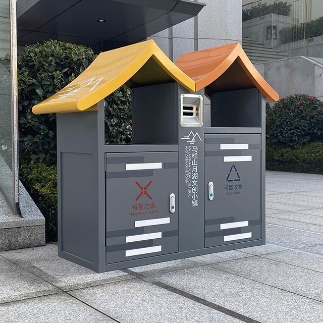 環(huán)衛(wèi)屋形噴粉不銹鋼分類垃圾桶制作精良,不銹鋼本色戶外連體兩分類方形垃圾桶設(shè)計,適合擺放在室內(nèi)物業(yè)小區(qū)、市政街道、廣場、工業(yè)區(qū)道路或公園景區(qū)等等,注重產(chǎn)品細節(jié)部位處理堅固耐用,安全無利口,不傷手,框架201不銹鋼外筒,不銹鋼內(nèi)筒也可以選擇鍍鋅板、塑料、玻璃鋼等等,便于垃圾清倒。