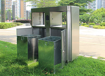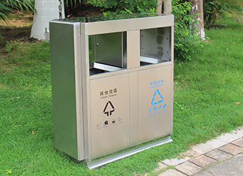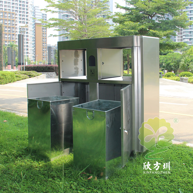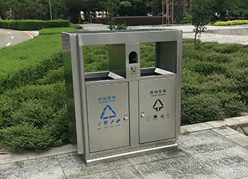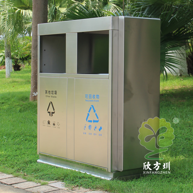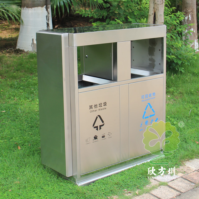 戶外公園雙分類不銹鋼垃圾箱采用201#不銹鋼板制作而成,這款垃圾桶設(shè)計(jì)簡(jiǎn)潔大氣啞光其他垃圾、可回收垃圾兩分類設(shè)計(jì),兩邊側(cè)面中心可以開煙灰盅或者有害垃圾投口,表面處理電鍍、烤漆多選擇還可以定制絲印企業(yè)logo名稱。
