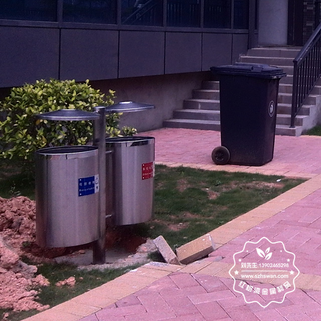 戶外圓柱形不銹鋼分類垃圾桶制作精良,圓柱形防盜雙分類設(shè)計(jì),注重產(chǎn)品細(xì)節(jié)部位處理堅(jiān)固耐用,安全無利口,不傷手,201不銹鋼外筒,配備圓柱形鍍鋅板內(nèi)筒,或者選擇:不銹鋼、塑料、玻璃鋼等內(nèi)筒制作,便于垃圾清倒;適合擺放場景:街道、城中村、工業(yè)區(qū)、物業(yè)小區(qū)、社區(qū)等等。