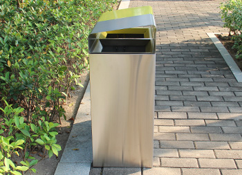 市政街道不銹鋼分類垃圾箱采用了常規(guī)1mm厚的201不銹鋼板制作而成,方形組合式分類設計,正面右上角絲網印刷絲印了分類圖標,桶身整體是不銹鋼本色,桶蓋往后翻可以取出垃圾桶的內筒,桶蓋可回收垃圾噴塑了黃色頂部坡面制作,我們欣方圳廠家支持定制不銹鋼果皮箱。