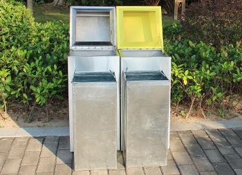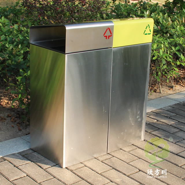 市政街道不銹鋼分類垃圾箱制作精良,戶外雙分類方形組合式高檔設計,適合擺放在市政街道、物業(yè)小區(qū)、車站、醫(yī)院、商場等等,注重產品細節(jié)部位處理堅固耐用,安全無利口,不傷手,201不銹鋼外筒,鍍鋅板內筒 ,便于垃圾清倒。