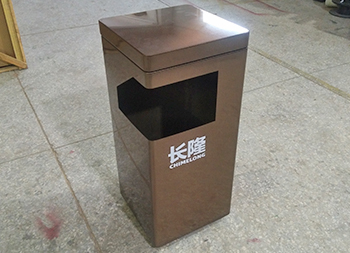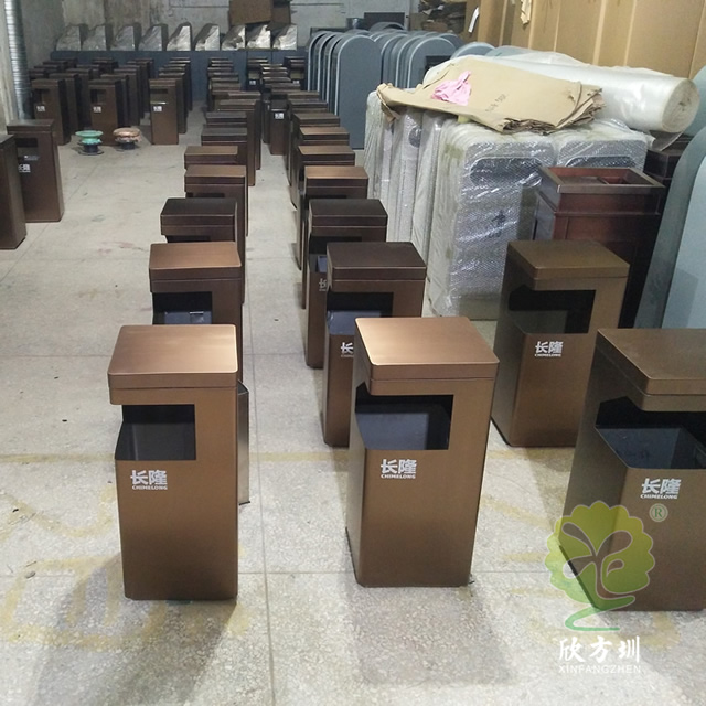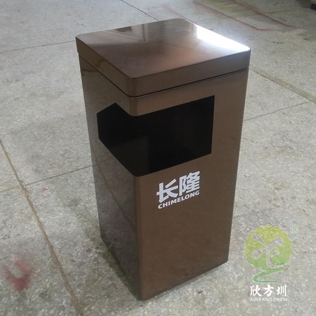 景區(qū)電鍍方形不銹鋼垃圾桶采用了201不銹鋼板制作而成,方形電鍍咖啡色單筒設計,頂部邊角L型開口制作廢物投口,投口下方使用了絲網(wǎng)印刷了白色企業(yè)名稱,頂部有個凹槽可以取出拿出里面的內筒方便清潔工清理桶內的廢物,這款果皮箱適合室內外使用,我們欣方圳可以根據(jù)您的要求定制金屬果皮箱、玻璃鋼垃圾桶等,專業(yè)生產景區(qū)果皮箱的廠家。