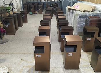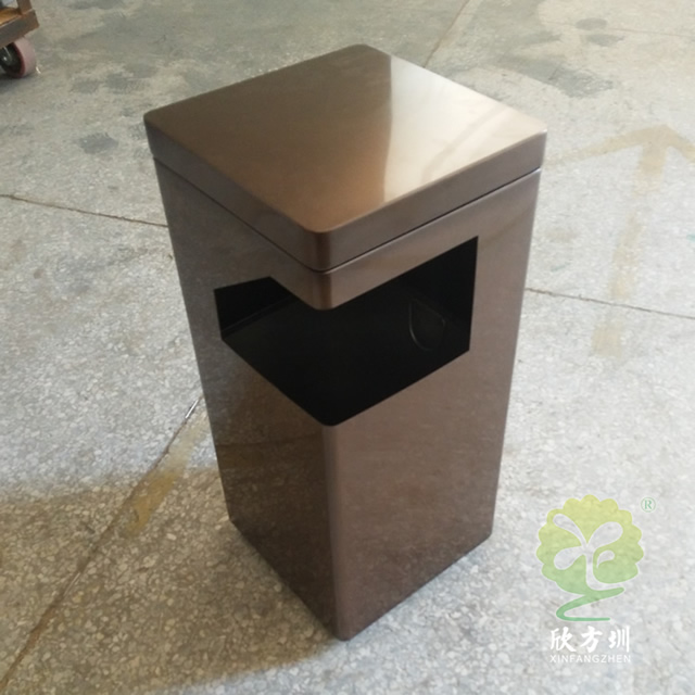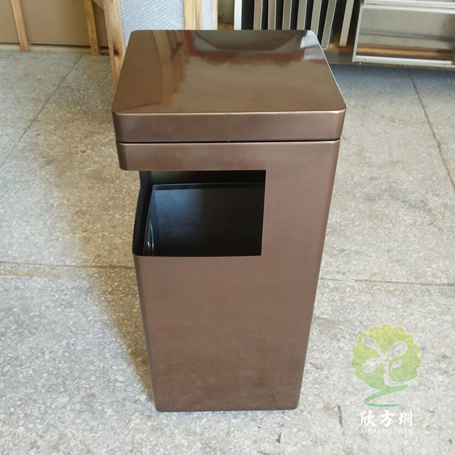 景區(qū)電鍍方形不銹鋼垃圾桶制作精良,方形電鍍咖啡色室內戶外設計,注重產品細節(jié)部位處理堅固耐用,安全無利口,不傷手,201不銹鋼外筒,配備方形鍍鋅板內筒,或者選擇:不銹鋼、塑料、玻璃鋼等內筒制作,便于垃圾清倒;適合擺放場景:景區(qū)、社區(qū)、小區(qū)物業(yè)、寫字樓、醫(yī)院、學校室內等等。