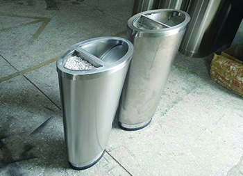 酒店橢圓形室內(nèi)不銹鋼垃圾桶可以選用201#、304#、316#優(yōu)質(zhì)不銹鋼材料模壓成型,外桶橢圓形設(shè)計(jì)頂部可以放滅煙石,內(nèi)筒可以選擇鍍鋅板、塑料、不銹鋼、玻璃鋼,堅(jiān)固耐用,不易破損;耐火安全,抗高低溫,適合各種惡劣氣候條件;金屬亮澤,高雅美觀,廣泛適用于各種場(chǎng)所;內(nèi)外表面光潔,減少垃圾殘。