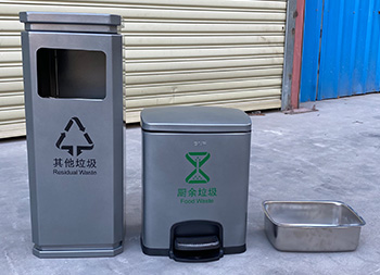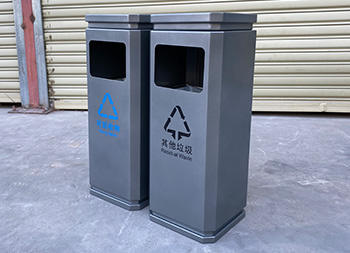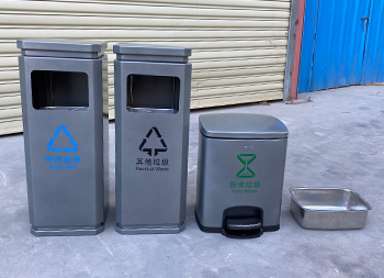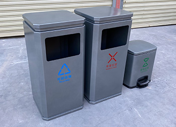 室內(nèi)噴塑不銹鋼分類垃圾桶是我們欣方圳廠家一個(gè)客戶定制的款式,由我們制造生產(chǎn)的一個(gè)樣品,方形組合式分類設(shè)計(jì),方形投口開口,桶身噴塑了啞光灰色,可以絲印國標(biāo)的分類標(biāo)識(shí),可回收物配備了小型的腳踏式垃圾桶,可以根據(jù)客戶的擺放情況以及材質(zhì)顏色專業(yè)定制。