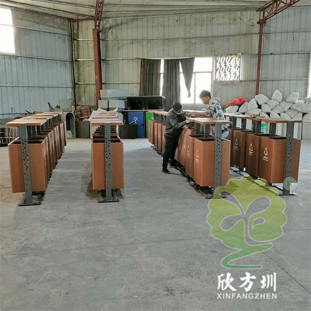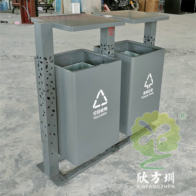 戶外景區(qū)鏤空立柱不銹鋼分類垃圾桶整體材質(zhì)采用201#不銹鋼桶身1.0mm,三根立柱80*80*1.0mm厚度表面圖案鏤空,垃圾桶底板足4.7mm不銹鋼板能,夠良好避免大風(fēng)吹倒人為破壞傾斜,立柱噴塑烤漆灰色,大貨用戶做的深黃色,用戶打樣品是整體噴塑烤漆深灰色,能夠良好的避免垃圾桶清晰擦拭的困難,景區(qū)回收箱無(wú)滅煙處設(shè)計(jì)。