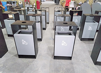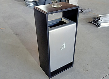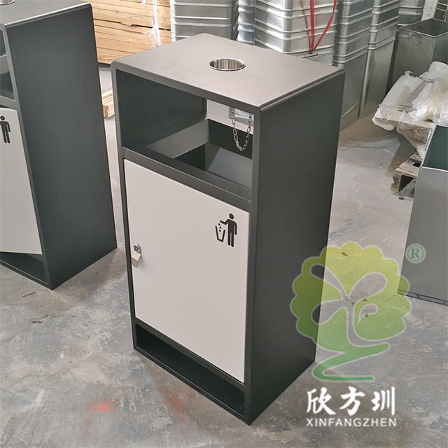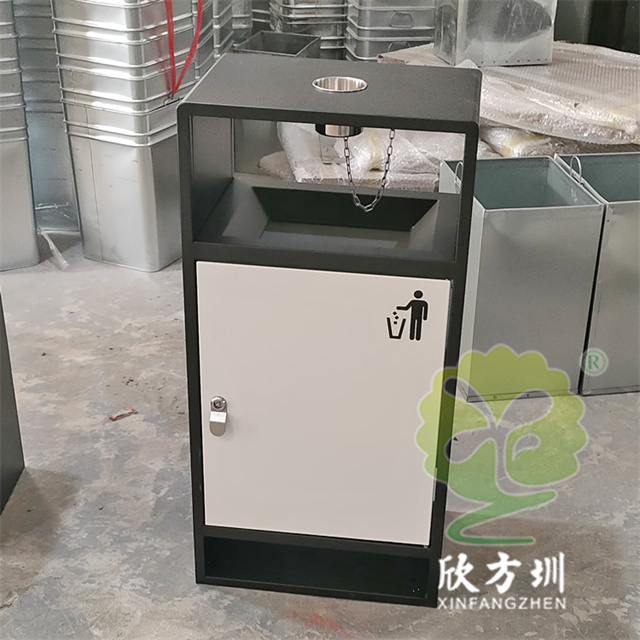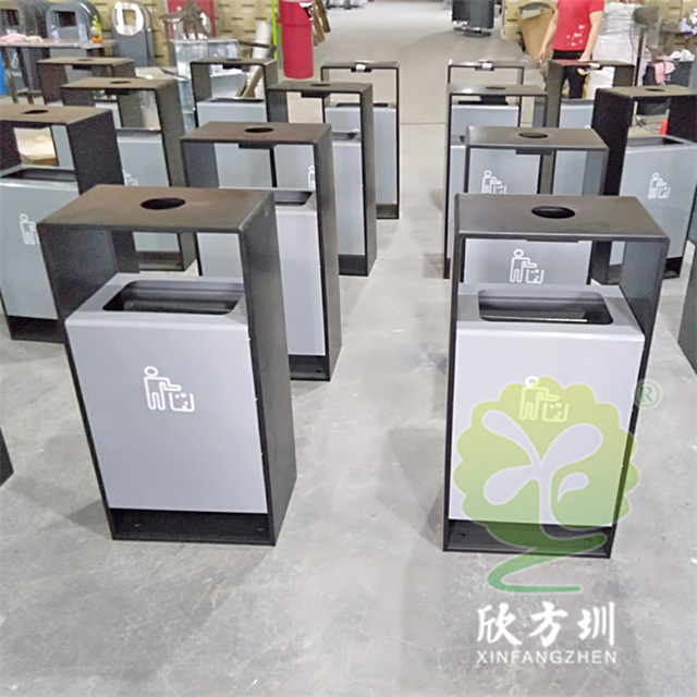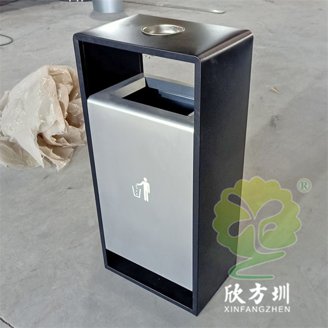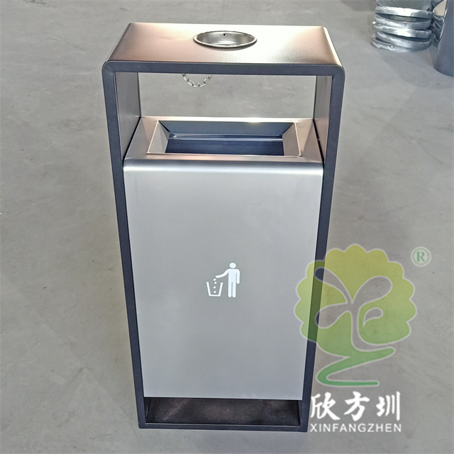 戶外熱銷方形簡(jiǎn)易不銹鋼垃圾桶可以選用不銹鋼或者鍍鋅板制作,這款果皮箱框架噴涂黑色塑粉桶身噴塑銀色,表面可以根據(jù)用戶要求定制,頂部中心位置帶圓形的煙灰盅,投口帶折邊,桶身離地面比較高也有效避免雨水進(jìn)入,可以絲印logo人頭標(biāo)或分類標(biāo)識(shí)。