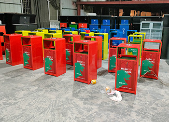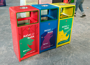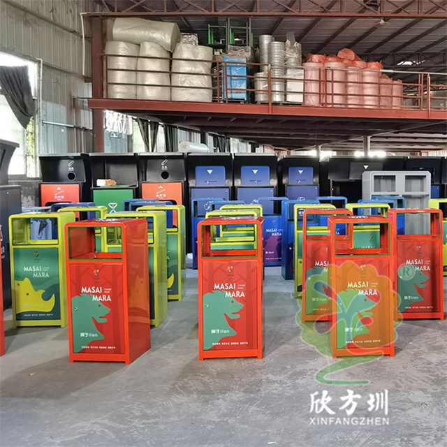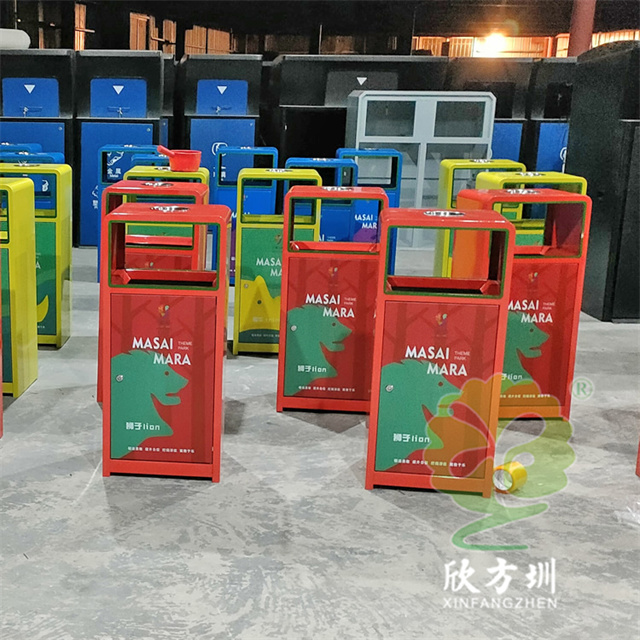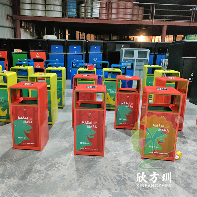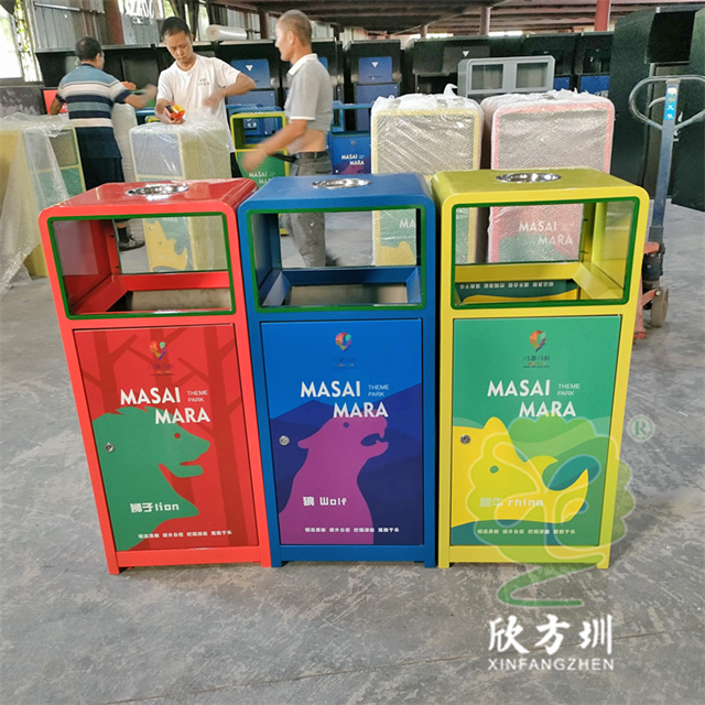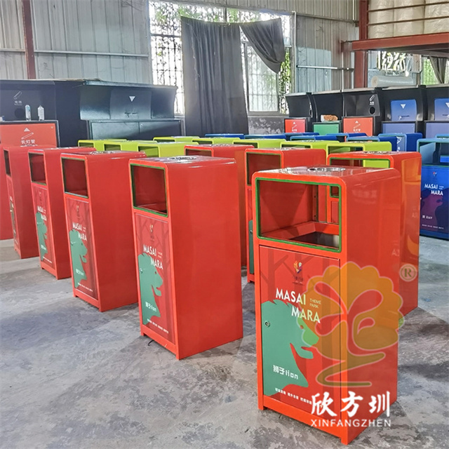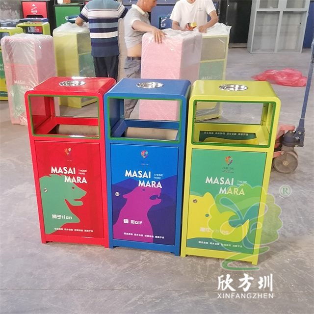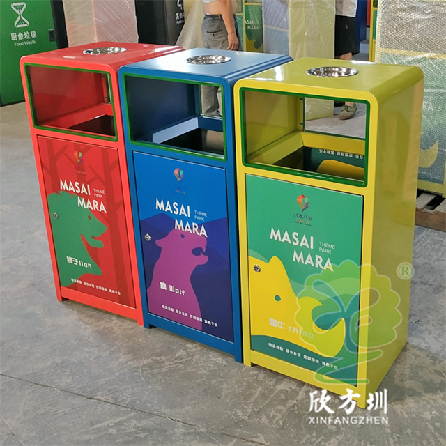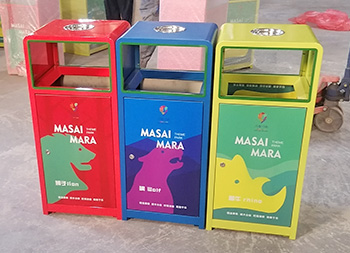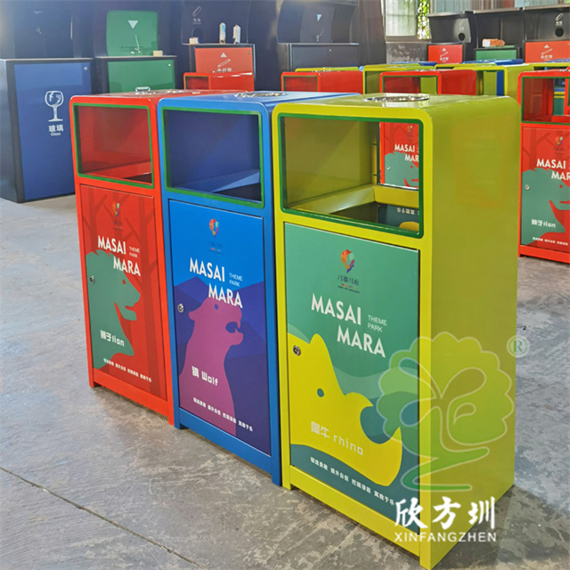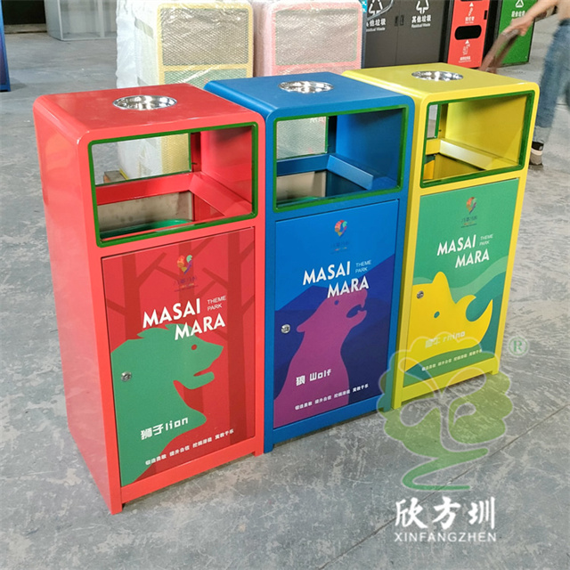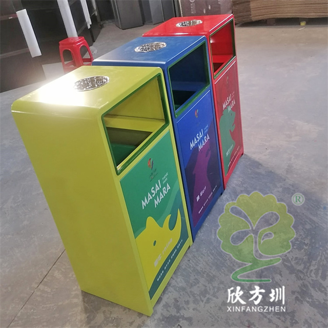 戶外三色加厚不銹鋼分類垃圾桶采用了2.00mm厚304#不銹鋼板制造而成,一般常規(guī)的不銹鋼板厚度我們廠家都會使用1.00mm厚,室外組合式方形雙面投口設(shè)計,表面采用了三色噴涂噴塑上色,垃圾桶門板應(yīng)用了UV打印抽象卡通圖案,頂部中心位置帶碗形煙灰盅,門板左中間帶三角鑰匙鎖頭,我們廠家支持板材、厚度、表面工藝定制。