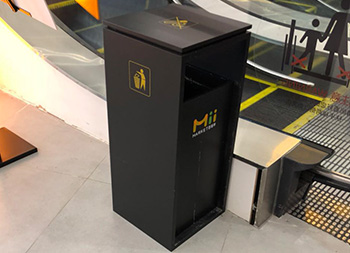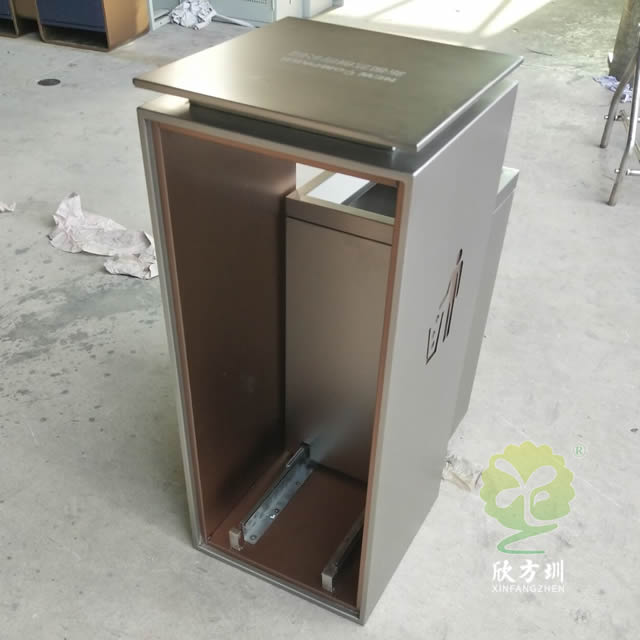 商場(chǎng)電梯口方形不銹鋼垃圾桶長(zhǎng)330mm寬330mm高760mm可以選用優(yōu)質(zhì)的304、201等型號(hào)的不銹鋼板制作,整體方形單筒抽屜式設(shè)計(jì),logo企業(yè)名稱采用腐刻工藝來(lái)制作,這款支持定制可以做本色、電鍍土豪金、玫瑰金、烤漆等等顏色,這款垃圾桶外觀大氣時(shí)尚。