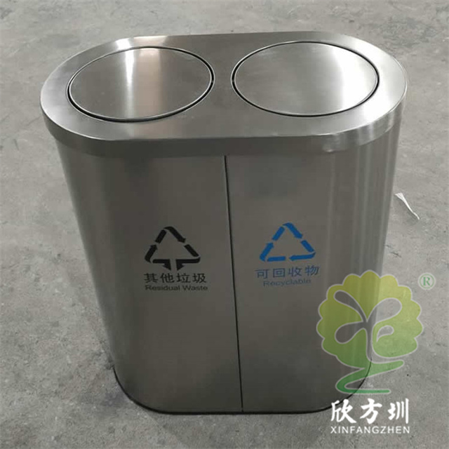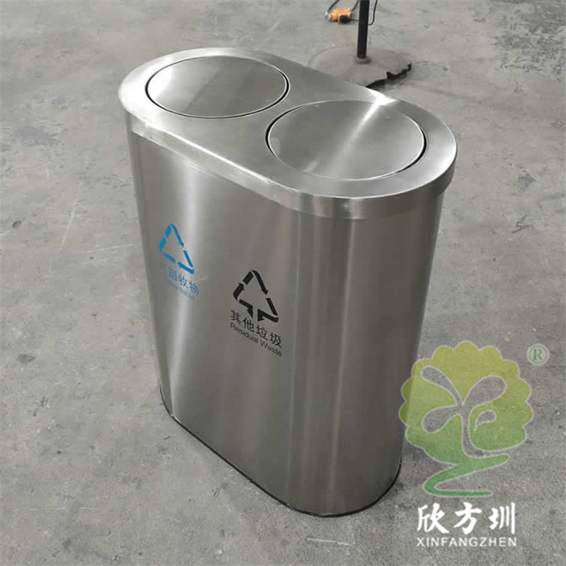 室內(nèi)商用帶蓋兩連體不銹鋼分類垃圾桶這款垃圾桶制作精良,橢圓形不銹鋼分類室內(nèi)垃圾桶設(shè)計,適合擺放在車站、學(xué)校校園、購物商場、寫字樓、醫(yī)院、酒店賓館等等,注重產(chǎn)品細節(jié)部位處理堅固耐用,安全無利口,不傷手,整體框架201不銹鋼外筒,鍍鋅板內(nèi)筒本色0.4mm厚度也可以選擇塑料、玻璃鋼、鍍鋅板、不銹鋼等等,便于垃圾清倒。