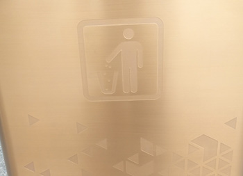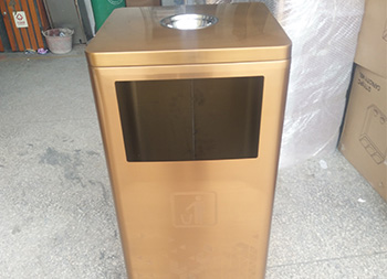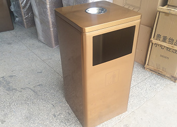 室內(nèi)方形蝕刻土豪金不銹鋼垃圾桶是一款高檔的果皮箱,采用了耐腐蝕的304不銹鋼板制造而成,采用了電鍍土豪金蝕刻表面處理工藝,立式方形單面投口設(shè)計(jì),桶身表面人頭標(biāo)和創(chuàng)意圖案采用了蝕刻工藝,頂部中心位置含一個(gè)圓碗形的煙灰盅,外桶表面做了防指紋處理,我們生產(chǎn)廠家支持。