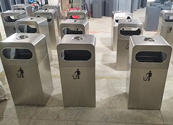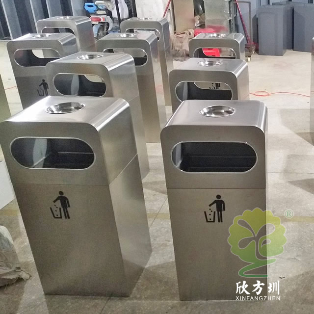 室內(nèi)商場(chǎng)方形不銹鋼果皮箱采用201#不銹鋼板折彎焊接組裝而成,金屬表面處理可以選擇啞光、鏡光、電鍍、烤漆等改變表面色澤,內(nèi)筒配備是鍍鋅板內(nèi)筒,外觀方形雙面投口頂部帶煙灰盅設(shè)計(jì),絲網(wǎng)印刷了垃圾標(biāo)識(shí),這款垃圾桶適合擺放室內(nèi)商場(chǎng)、酒店、公寓、小區(qū)等電梯口旁邊。