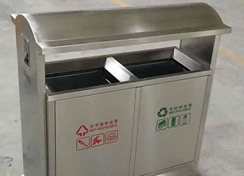 戶外社區(qū)雙分類不銹鋼垃圾箱這款垃圾桶制作精良,戶外兩分類組合式資源回收箱設(shè)計,適合擺放在物業(yè)小區(qū)、市政街道、旅游景區(qū)等等,注重產(chǎn)品細(xì)節(jié)部位處理堅固耐用,安全無利口,不傷手,201不銹鋼外筒,鍍鋅板內(nèi)筒 ,便于垃圾清倒。