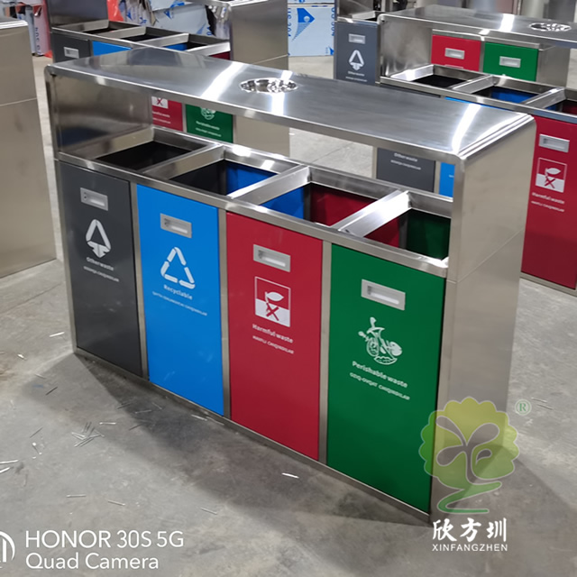 城市街道四色不銹鋼分類垃圾桶制作精良,戶外四分類方形設計,注重產(chǎn)品細節(jié)部位處理堅固耐用,安全無利口,不傷手,304#或201不銹鋼外筒,方形鍍鋅板內(nèi)筒,或者選擇:不銹鋼、塑料、玻璃鋼等內(nèi)筒制作,便于垃圾清倒;適合擺放戶外場景:城市街道、物業(yè)小區(qū)、學校醫(yī)院、公園景點、廣場、工業(yè)區(qū)等等。