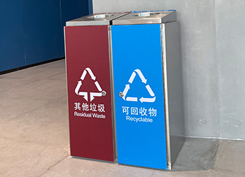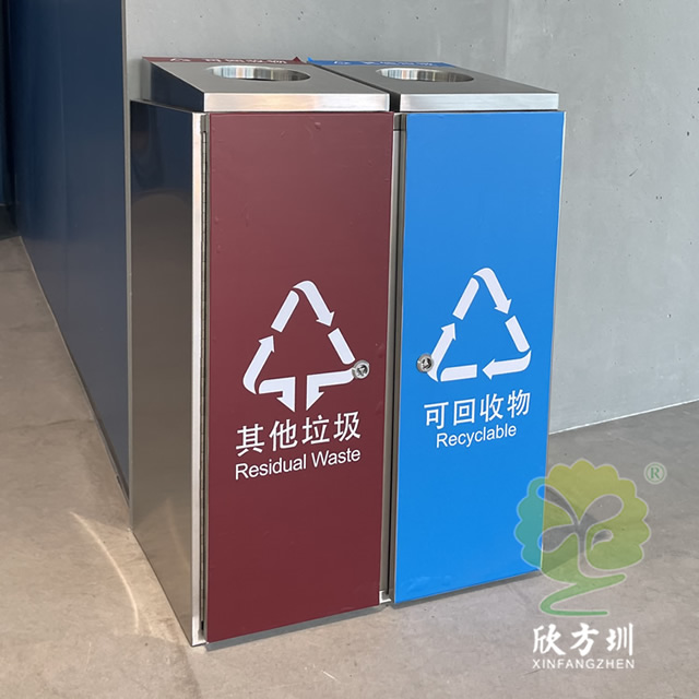 文體局室內(nèi)不銹鋼分類垃圾桶是深圳市龍華區(qū)文化廣電旅游體育局的一位采購在我們工廠定做一款桶,外桶材質(zhì)采用了201#不銹鋼板制造,方形桶圓形直投口設(shè)計(jì),可以組合式擺放兩分類或者三分類四分類,垃圾桶門板采用四色圖紙擁有國標(biāo)最新分類標(biāo)識(shí),門板三角鑰匙可開門取出內(nèi)置的內(nèi)膽。