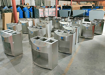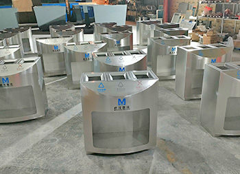 湖北武漢透明三分類不銹鋼垃圾桶采用了優(yōu)質(zhì)的201不銹鋼1.0mm厚的板材制造,透明部分采用了3.0mm厚的亞克力板,三分類方形設(shè)計(jì),這款垃圾桶不含內(nèi)筒,直接套用透明塑料垃圾袋使用,絲網(wǎng)印刷了可回收物、其他垃圾、有害垃圾以及武漢地鐵logo標(biāo)識(shí)。