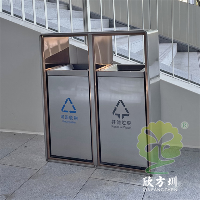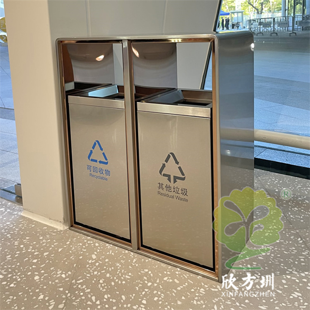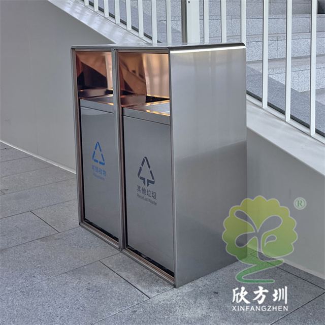 戶外電鍍香檳金不銹鋼分類垃圾桶這款垃圾桶制作精良,戶外兩連體分類方形不銹鋼本色啞光滑軌設(shè)計(jì),適合擺放在城市廣場、市政街道、物業(yè)小區(qū)、旅游景區(qū)等等,注重產(chǎn)品細(xì)節(jié)部位處理堅(jiān)固耐用,安全無利口,不傷手,201不銹鋼外筒,鍍鋅板內(nèi)筒 , 可以定制不銹鋼內(nèi)筒、玻璃鋼內(nèi)筒、或者塑料內(nèi)筒等,便于垃圾清倒。