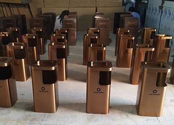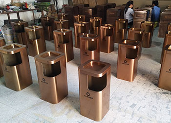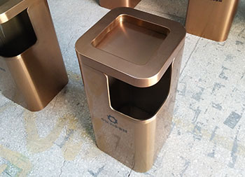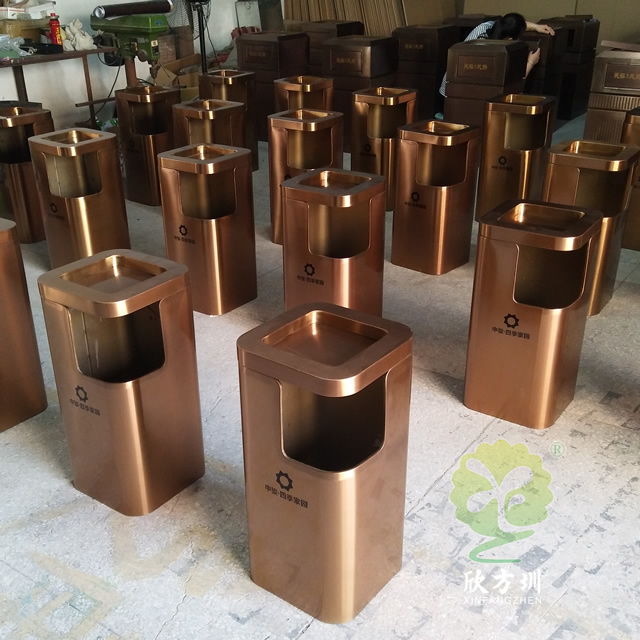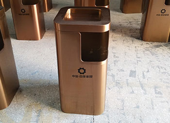 小區(qū)電梯口方形不銹鋼果皮箱采用了優(yōu)質(zhì)201#不銹鋼板折彎焊接成型制作的,這款垃圾桶采用了電鍍玫瑰金,我們工廠支持定制,同樣采購也可以選擇不銹鋼本色、香檳金、土豪金等的顏色,頂部帶煙灰盅平面圓角座設(shè)計可以放滅煙石,適合高檔場所物業(yè)小區(qū)、酒店等地方電梯口擺放。