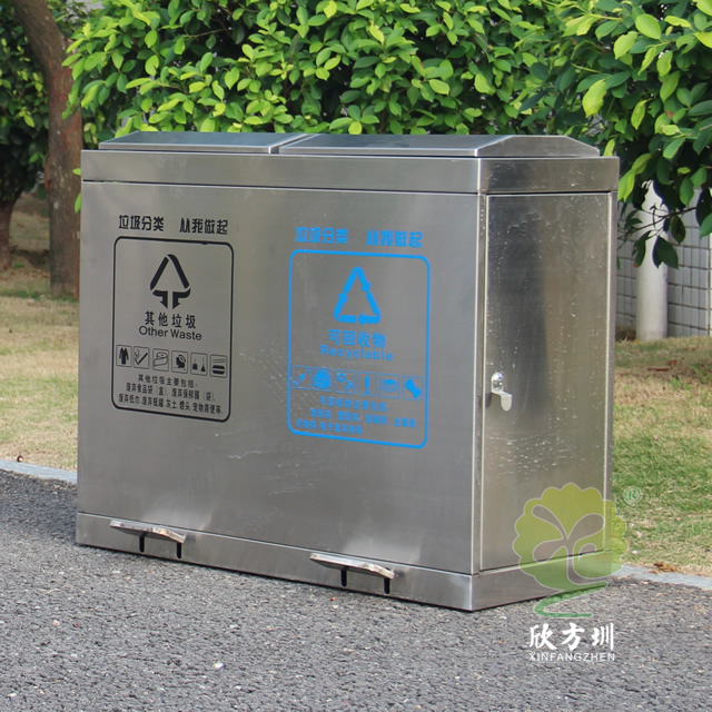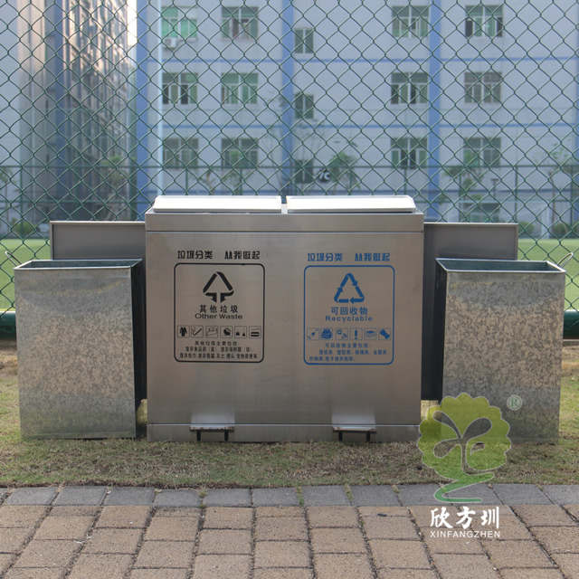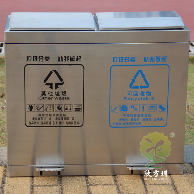 學(xué)校腳踏式不銹鋼分類垃圾箱采用優(yōu)質(zhì)的201#不銹鋼板制作而成,這款垃圾桶使用了其他垃圾、可回收垃圾兩個(gè)分類先進(jìn)靜音技術(shù)設(shè)計(jì),密封性很好可以防雨水進(jìn)入,有著良好的防止異味跑出,很適合室內(nèi)和戶外使用,腳踏式開蓋設(shè)計(jì)更加衛(wèi)生,側(cè)面兩邊可以使用三角鑰匙取出內(nèi)筒,支持定制絲印了垃圾分類標(biāo)識(shí)。