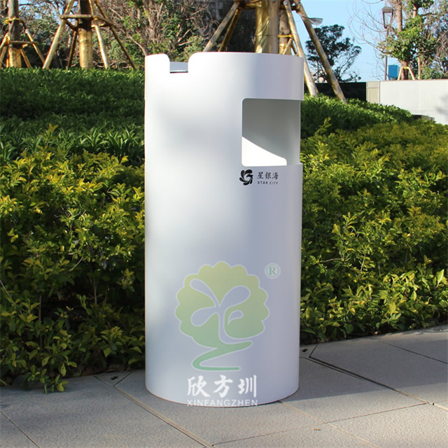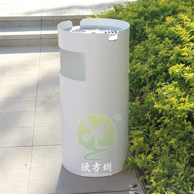 商場圓柱形加厚不銹鋼果皮箱采用了2.0mm厚201#不銹鋼板制造而成,雙面方形投口,加厚板材圓柱形設(shè)計,垃圾桶身象牙白噴塑上色,桶上方帶一個網(wǎng)格的滅煙盒,取出內(nèi)筒需要先拿出頂部網(wǎng)格和滅煙盒才能取出果皮箱的內(nèi)筒,投口左下方絲印了企業(yè)標(biāo)識,欣方圳工廠支持材質(zhì)規(guī)格顏色及外觀定制。