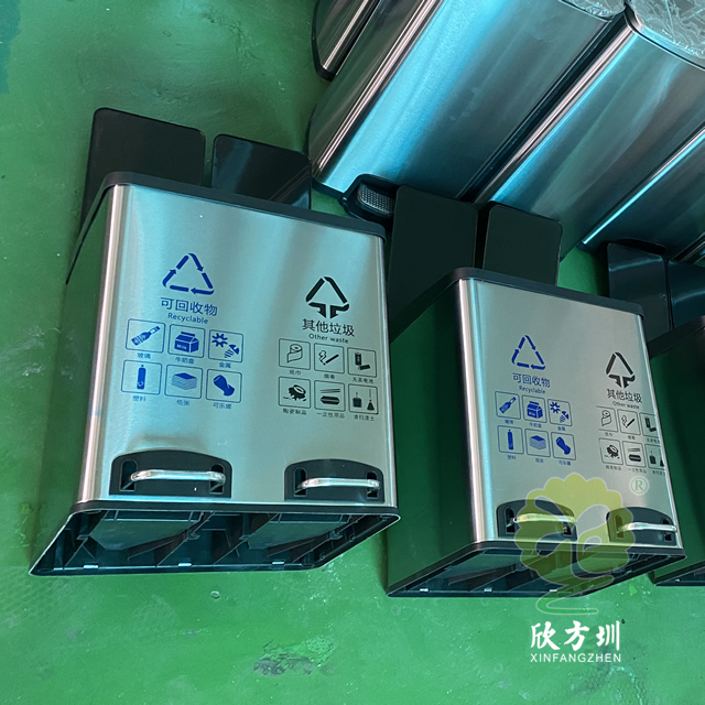 室內(nèi)腳踏式分類(lèi)不銹鋼垃圾桶圖片:
