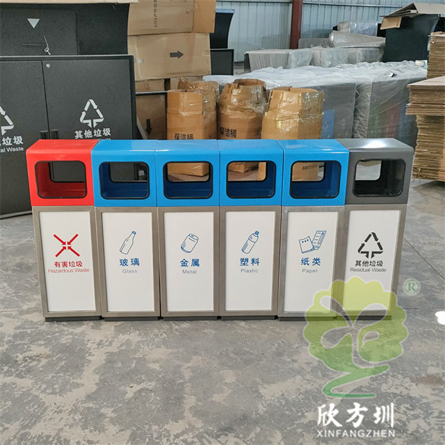 戶外組合式不銹鋼分類垃圾桶圖片桶身使用了201#不銹鋼1.0厚的板材制造,產品型號:E203-3,產品型號:產品規(guī)格:300*300*900mm,雙面投口方形單筒組合式擺放分類設計,表面采用了多色彩噴塑可以按照用戶需要烤漆,可絲網印刷玻璃、金屬、塑料、紙類、其他垃圾、有害垃圾等最新國標分類標識,取出頂部投口可取出內置的內筒方便清理廢物,內筒材質采用了鍍鋅板常規(guī)內筒。