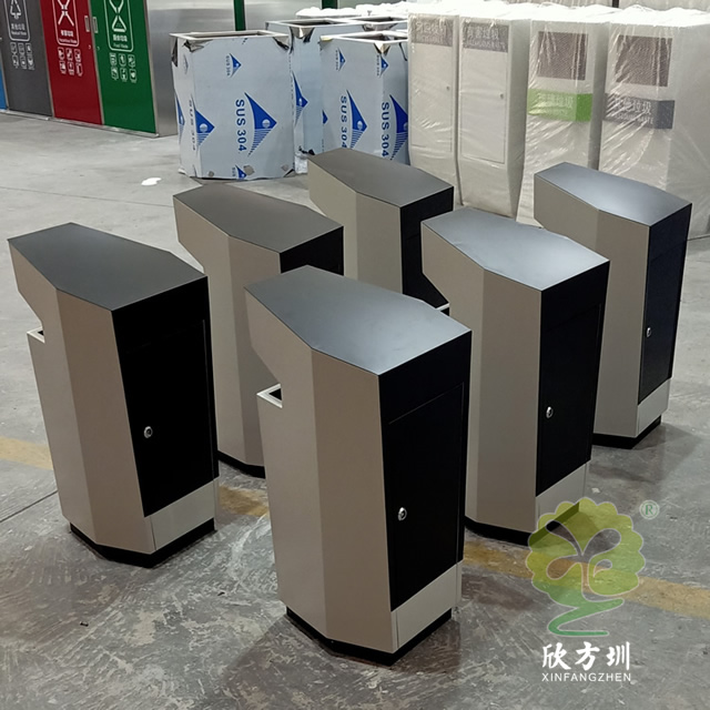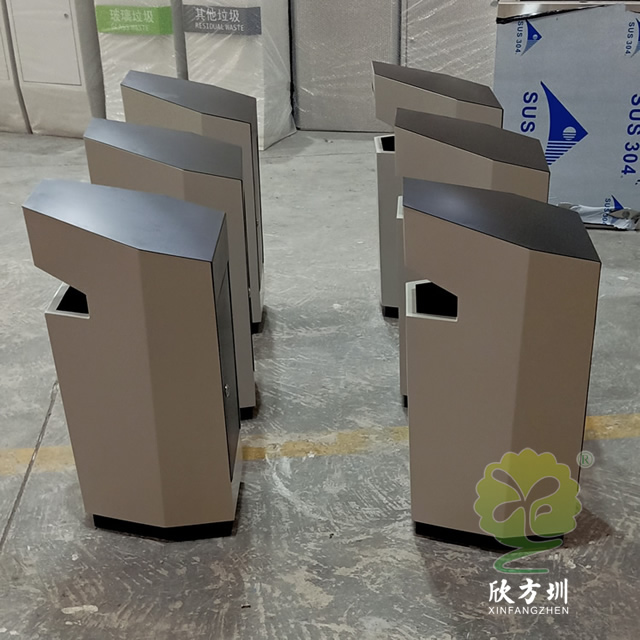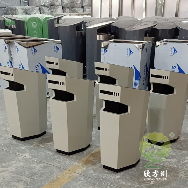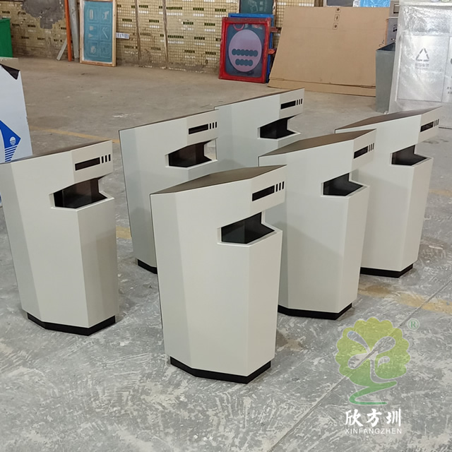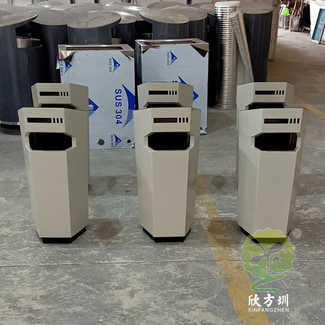 以上室內異形噴塑不銹鋼垃圾桶圖片采用了1.0mm厚的201不銹鋼板制作而成,型號:C774,規(guī)格370*370*750mm,簡練異形六邊形噴塑室內外規(guī)劃,垃圾桶專門噴塑了米白色底部和后面頂部噴塑了黑色,正面頂上垃圾桶投口,投口頂部是一個煙灰盅裝煙頭的,背后開門取出內筒方便整理內筒廢物以及煙頭,可以擺放在室內電梯口、酒店或許室外。