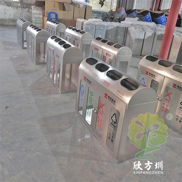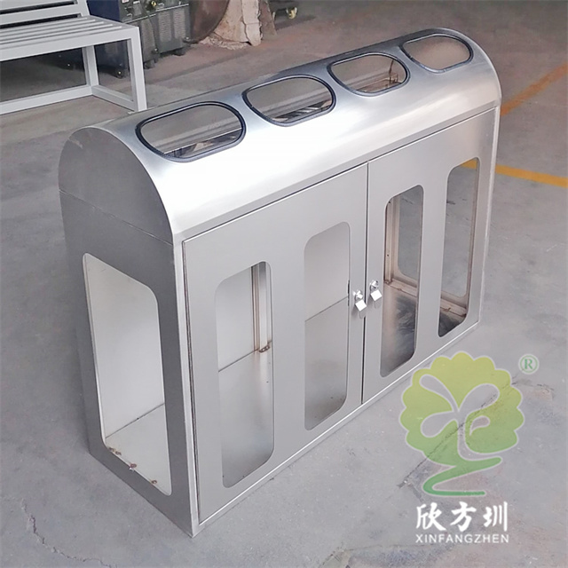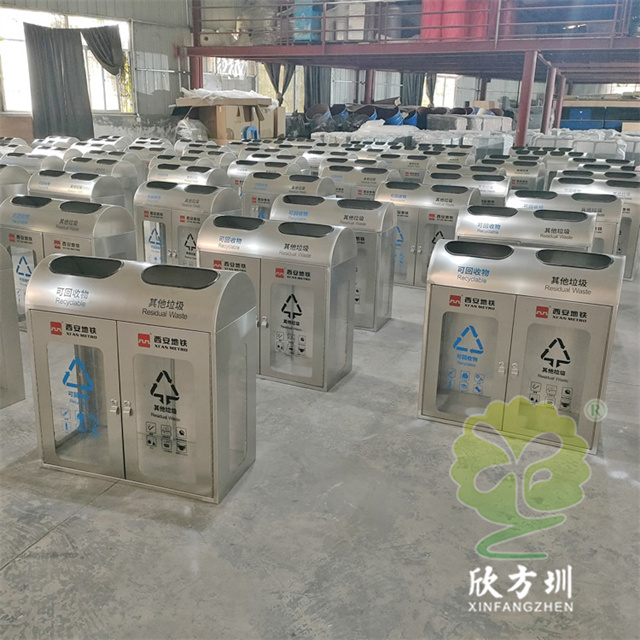 西安地鐵站透明不銹鋼分類垃圾桶外筒201不銹鋼,類型:C903,尺寸標(biāo)準(zhǔn):800*370*850mm/1100*370*850mm,1.2mm厚度(足1.12mm)用戶定制了兩種標(biāo)準(zhǔn)兩分類和四分類的,這款果皮箱不含內(nèi)筒,桶身正面開門,正面和兩個旁邊面有通明亞克力板4mm厚度(足3.75mm),桶身正面絲印分類標(biāo)識和西安地鐵的LOGO,投口粘黑色膠條有效避免割到手,可以打木架或者紙箱包裝,帶導(dǎo)軌和繃簧。