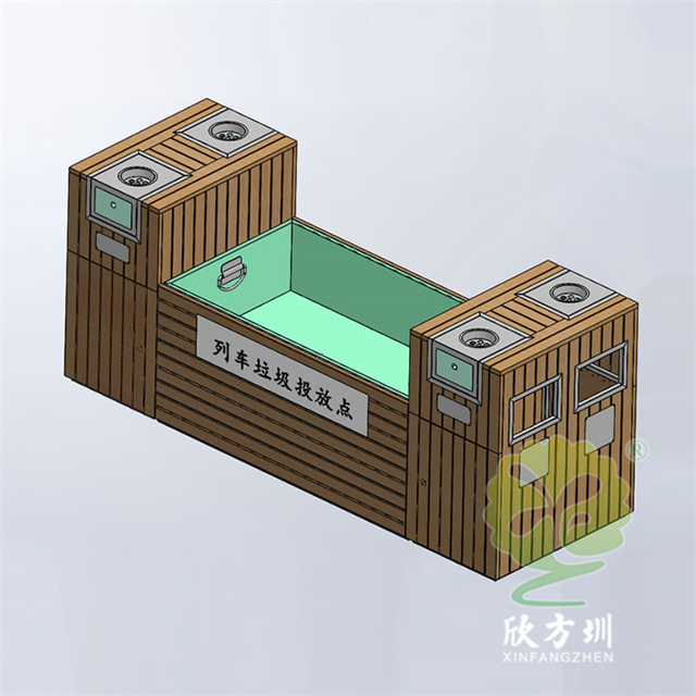 高鐵站高站臺(tái)鋼木分類垃圾箱是青海一位顧客在我們工廠定制的,這款垃圾桶設(shè)計(jì)比較特殊是兩個(gè)兩連體的垃圾桶加一個(gè)方形的列車?yán)斗盘幗M合擺放,采用了防腐木加不銹鋼及冷軋鋼板制作而成,用戶定制了兩張不同顏色的防腐木條,中間這個(gè)投放處方便列車員扔廢物,旁邊兩個(gè)垃圾桶方便旅客扔垃圾及抽煙使用,頂部配備了4個(gè)滅煙盒。