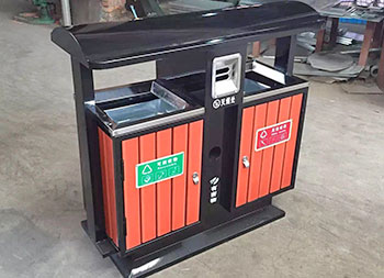 戶外小區(qū)雙分類鋼木垃圾桶鋼鐵部分