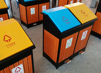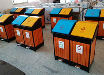 兩分類腳踏式鋼木垃圾桶鋼鐵部分