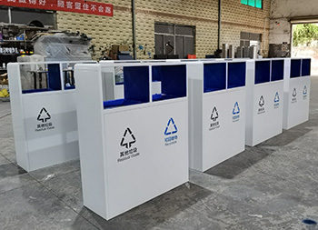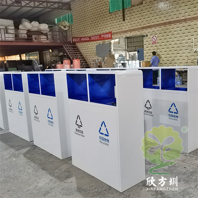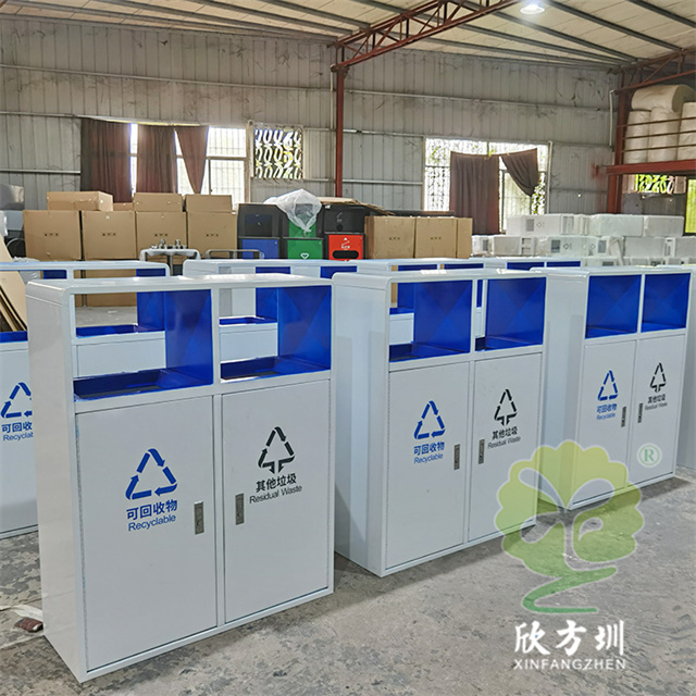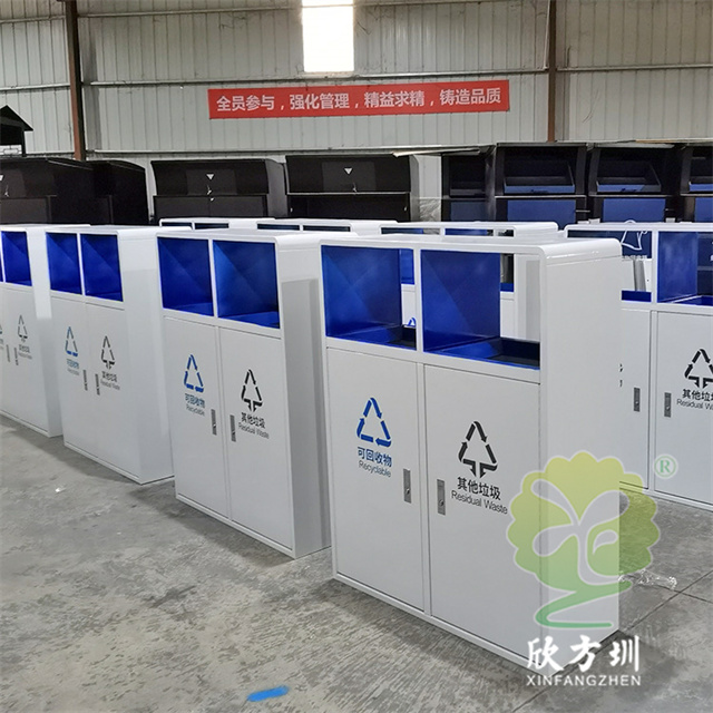 戶外烤漆白色兩連體鍍鋅板分類垃圾箱采用了1.00mm厚的鍍鋅板制作而成,雙面投口方形兩連體分類設(shè)計簡潔大氣,兩面絲網(wǎng)印刷了其他垃圾和其他垃圾的最新國標(biāo)分類標(biāo)識,開門方式采用了磁吸方式推拉無需三角鑰匙, 我們廠家支持冷軋鋼板、不銹鋼、表面電鍍、烤漆、噴塑上色定制,每個城市都有每一個城市垃圾桶設(shè)計方案。