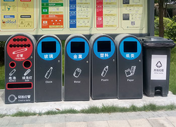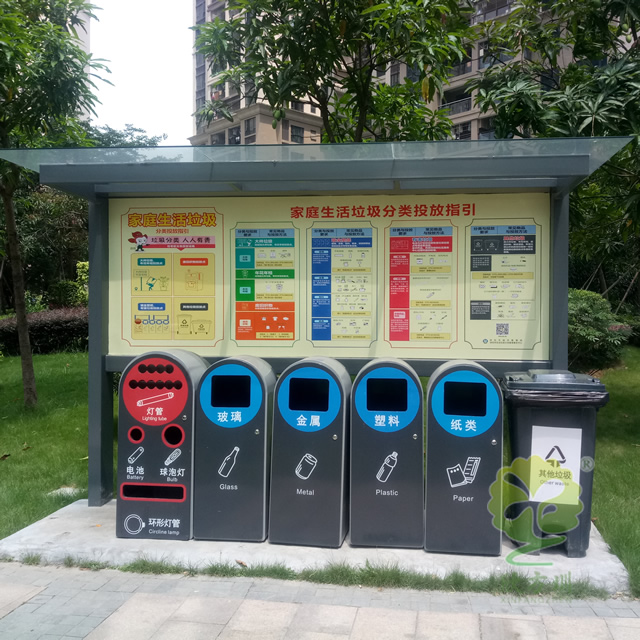玻金塑紙鋼制分類垃圾資源回收箱采用冷軋鋼板制作而成,玻璃、金屬、塑料、紙質(zhì)加一個燈管桶五分類設(shè)計,五分類有害垃圾桶簡稱玻金塑紙,深圳小區(qū)指定的分類垃圾回收箱。