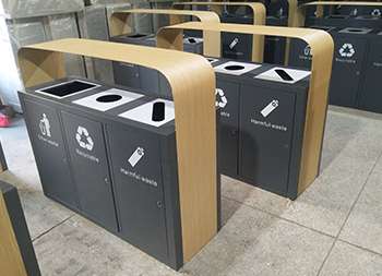 高檔仿木紋三分類垃圾桶廣泛適用于于垃圾分類收集,如城管系統(tǒng);環(huán)衛(wèi)系統(tǒng),物業(yè)管理系統(tǒng),小區(qū)、工廠、餐飲,城市道路、各類廣場(chǎng)、企業(yè)單位、花園、公園、學(xué)校、醫(yī)院、車站、碼頭、風(fēng)景旅游區(qū)等公共場(chǎng)所。鋼制垃圾桶不僅少有此類問(wèn)題,也容易清洗。鋼制垃圾桶采用優(yōu)質(zhì)的冷軋鋼板制作色澤亮麗美觀,并具有防潮、防火、防腐、防蛀、防銹、耐高溫、易清理不脫落,不起層使用壽命長(zhǎng)等特點(diǎn)。