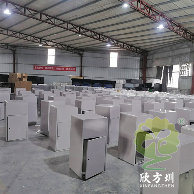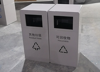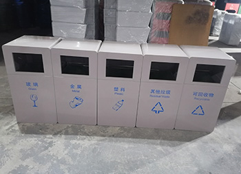戶外公園組合式鍍鋅板分類垃圾桶整體1.0mm厚噴塑外筒,方形任意組合式多分類設(shè)計,可以選擇用不銹鋼板制作桶身,桶身表面噴涂噴塑了米白色,背后可使用三角鑰匙開始開門取出內(nèi)筒,內(nèi)筒鍍鋅板0.4mm厚,正面絲印了最新國標(biāo)分類標(biāo)識,有現(xiàn)成的網(wǎng)版可以免費絲印分類標(biāo)識。