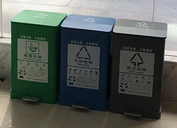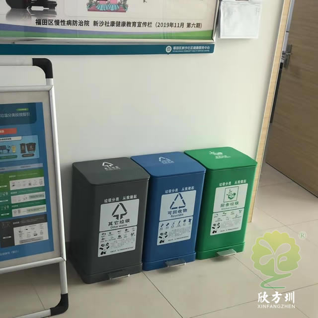 室內(nèi)鋼制腳踏式分類垃圾桶采用了優(yōu)質(zhì)的冷軋鋼板制作而成,四色紅色、綠色、藍(lán)色、灰色腳踏式方形設(shè)計(jì),顏色采用了噴塑上色,正面絲印了分類標(biāo)識(shí)可以任意組合,適合擺放在室內(nèi)的走廊、市政機(jī)關(guān)單位、醫(yī)院、學(xué)校、酒店等等進(jìn)行垃圾分類,內(nèi)筒采用了鍍鋅板制作。