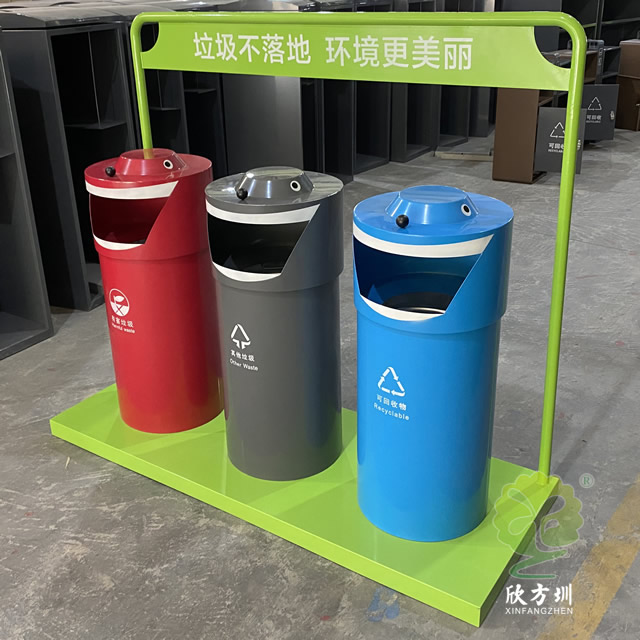 新款大型三分類鋼制垃圾桶廣泛適用于戶外垃圾分類收集,鋼制垃圾桶采用優(yōu)質(zhì)的冷軋鋼板制作色澤亮麗美觀,內(nèi)筒標配為圓形鍍鋅板可以另選塑料、玻璃鋼、不銹鋼、或者塑料內(nèi)桶等,冷軋鋼并具有防潮、防火、防腐、防蛀、防銹、耐高溫、易清理不脫落,不起層使用壽命長等特點。