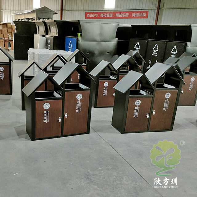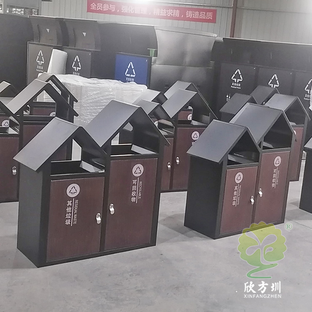 園林景觀屋形冷軋鋼板分類垃圾箱廣泛適用于戶園林景觀、公園景區(qū)、市政街道等等垃圾分類收集,鋼制垃圾桶采用優(yōu)質(zhì)的冷軋鋼板制作色澤亮麗美觀,內(nèi)筒標(biāo)配為鍍鋅板可以另選塑料、玻璃鋼、不銹鋼、或者塑料內(nèi)桶等,冷軋鋼并具有防潮、防火、防腐、防蛀、防銹、耐高溫、易清理不脫落,不起層使用壽命長(zhǎng)等特點(diǎn)。