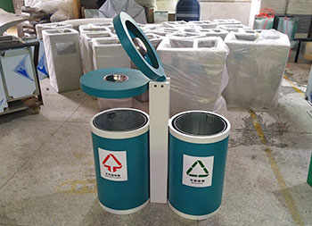 圓柱形烤漆兩分類鋼制垃圾桶采用優(yōu)質(zhì)的冷軋鋼板制造,桶身采用了兩個(gè)大圓桶創(chuàng)意的設(shè)計(jì),表面采用了戶外高溫烤漆上色,支持定制可以絲印logo及分類標(biāo)識,頂部帶兩個(gè)煙灰盅,特殊的頂部往上打開就可以輕松的取出內(nèi)筒來方便清潔工人倒垃圾。