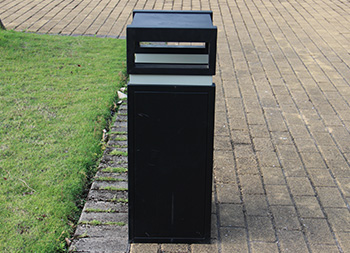 方形組合式鋼板分類垃圾桶采用加厚的優(yōu)質(zhì)的冷軋鋼板裁剪打磨工藝制作而成,方形組合式前后鏤空設(shè)計,桶身整體為黑色噴涂噴塑工藝上色,投口旁邊左右兩橫桿采用了白色噴塑,垃圾桶前后保留了金屬銀色,桶身前后鈑金沖孔工藝并且絲印垃圾分類圖標(biāo),三角鑰匙開門取出內(nèi)筒。